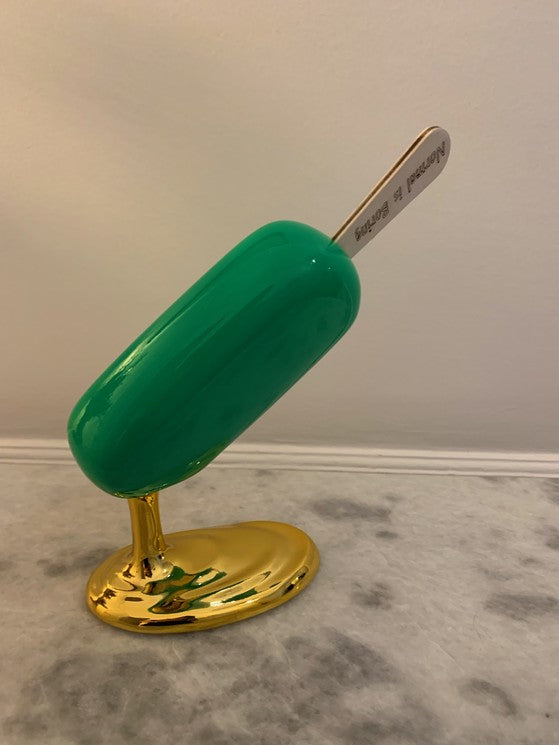 Normal is Boring – Green (2023) is een handgesigneerd kunstwerk van de Italiaanse kunstenaar Sagrasse (1966). Deze moderne sculptuur is uitgevoerd in hars en straalt een krachtige, eigentijdse uitstraling uit. Met zijn opvallende groene kleur en uitgesproken titel vormt dit werk een statement binnen ieder interieur of kunstcollectie.