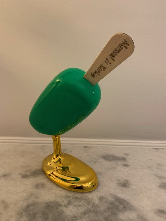 De titel Normal is Boring benadrukt de filosofie achter het werk: durf anders te zijn. De levendige groene uitvoering versterkt het eigentijdse karakter en maakt deze sculptuur tot een blikvanger in: