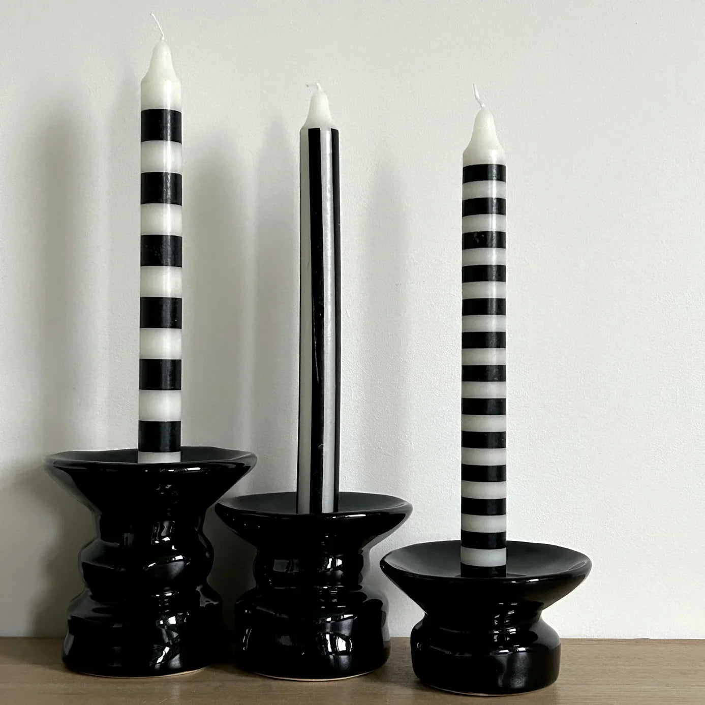 🕯️ Set van 4 Lange Zwart-Gestreepte Kaarsen – Grafisch & Stijlvol